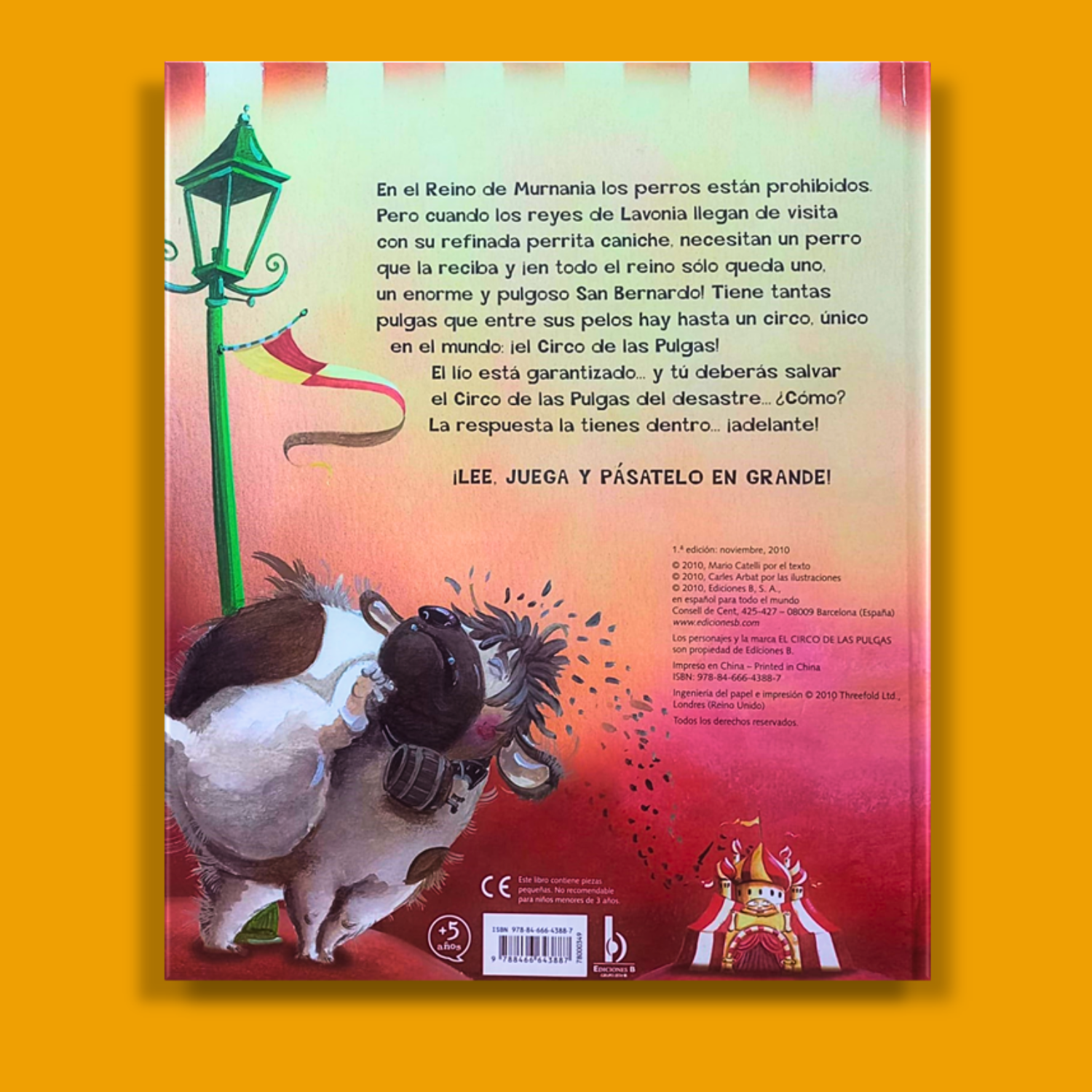 En el reino de Murnania los perros están prohibidos. Pero cuando los reyes de Lavonia llegan de visita con su refinada perrita caniche, necesitan un perro que la reciba, y ¡en todo el reino sólo queda uno, un enorme y pulgoso san bernardo! Tiene tantas pulgas que entre sus pelos hay hasta un circo, único en el mundo: ¡el Circo de las Pulgas! El lío está garantizado… y el lector deberá salvar el Circo de las Pulgas del desastre, jugando al juego de mesa que se incluye en el libro y desplegando todos los fabulosos pop ups que esconde. ¡¡LEE, JUEGA Y PÁSATELO EN GRANDE!! LIBRO CON TABLERO DE JUEGO